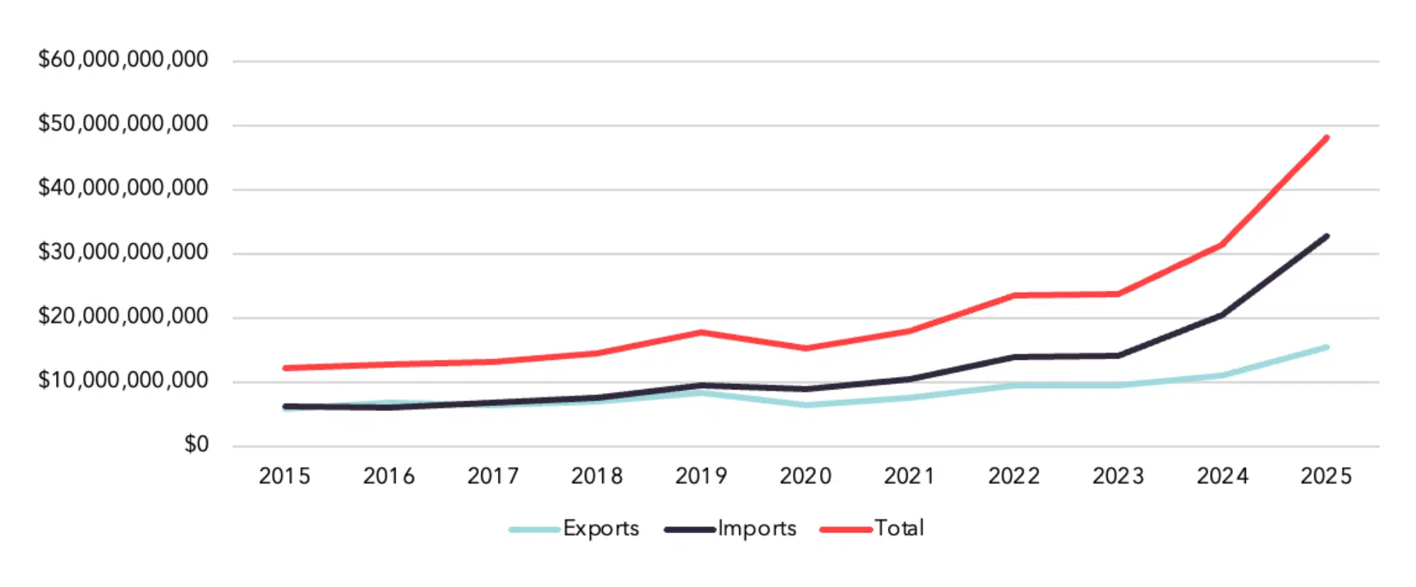 Arizona’s trade relationship with the APAC region reflects both the state’s deepening integration into global supply chains and its evolving economic diversification. While the APAC region accounts for 37% of total U.S. trade, Arizona maintains a higher concentration of its total trade at 47%.*
